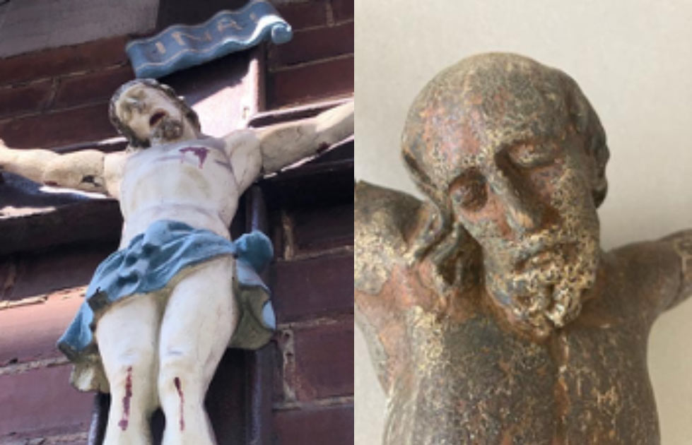 Si la potale n’avait pas été bénéficiaire d’une action conservatoire ce Christ en bois caractéristique de la sculpture baroque liégeoise risquait de devenir irrécupérable.